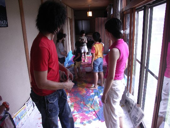 佐部利さんは私と同じ岐阜の画家です。もともと彼のすすめで昨年太宰府に来て、つながりが生まれました。今回は私の展覧会に合わせて、ワークショップを計画してくれました。 そとは暴風雨、にもかかわらずたくさんの地元の子どもたちがやってきました。学校なら登校停止でしょうけど、子どもは風の子です。 当然室内ワークショップです。昨年つながった福岡や太宰府の人たちも参加しました。 |