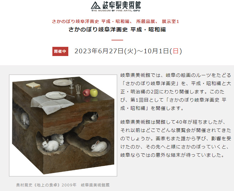 地元の岐阜県美術館で作品2点の展示があります。こちらは所蔵品展示室となります。こういう形で地元の美術館での展示はありがたいことです。チケット買って見ます!
